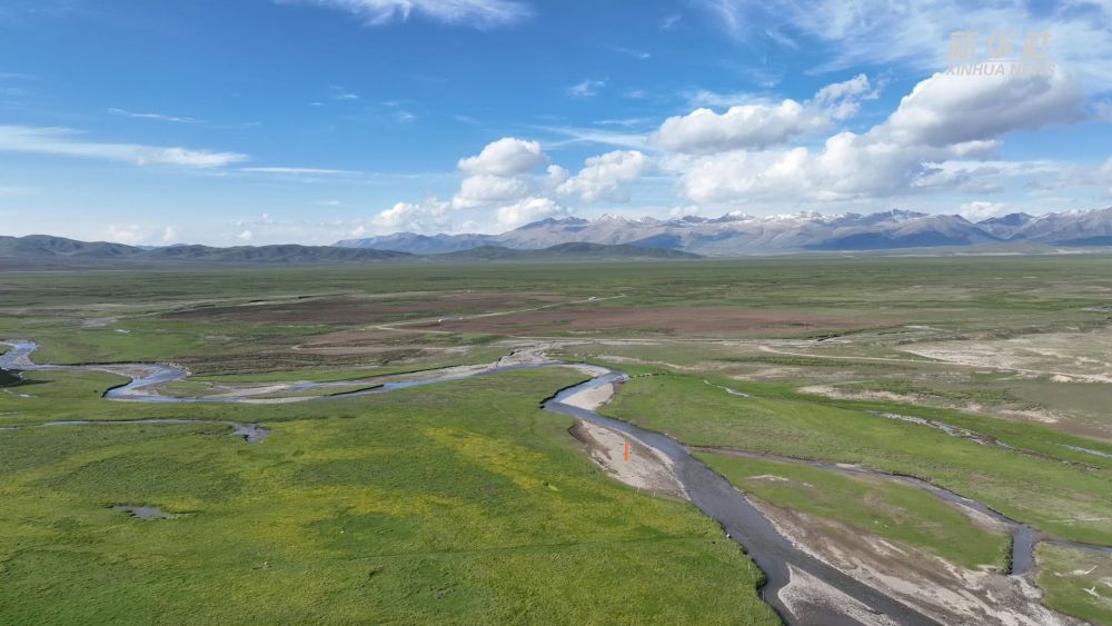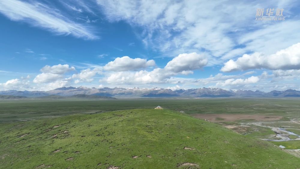 初夏时节,青海省海南藏族自治州贵南县内牧草茂盛,绿意盎然。一眼望去,清澈的河水顺着山脚汩汩流淌,一派夏日高原风光。
