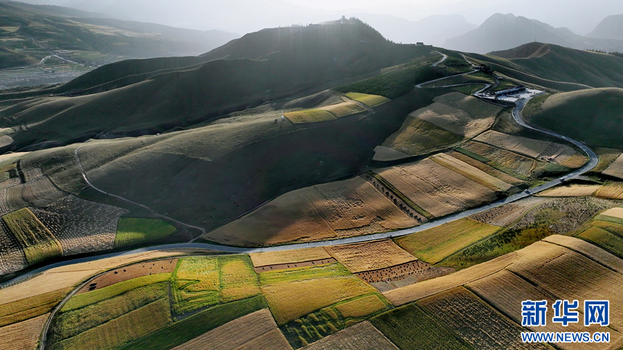 图为青海省海北藏族自治州祁连县境内的秋日风光(无人机照片)。新华网发(杨春丽 摄)