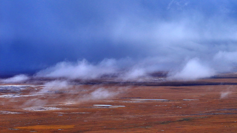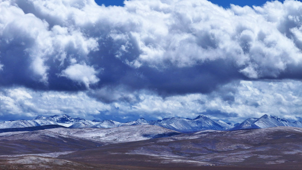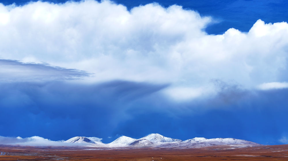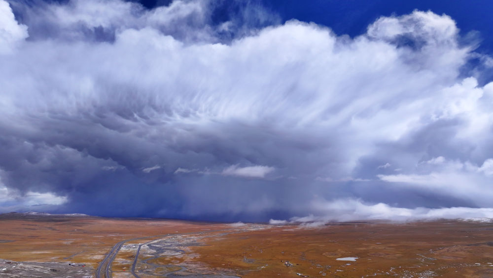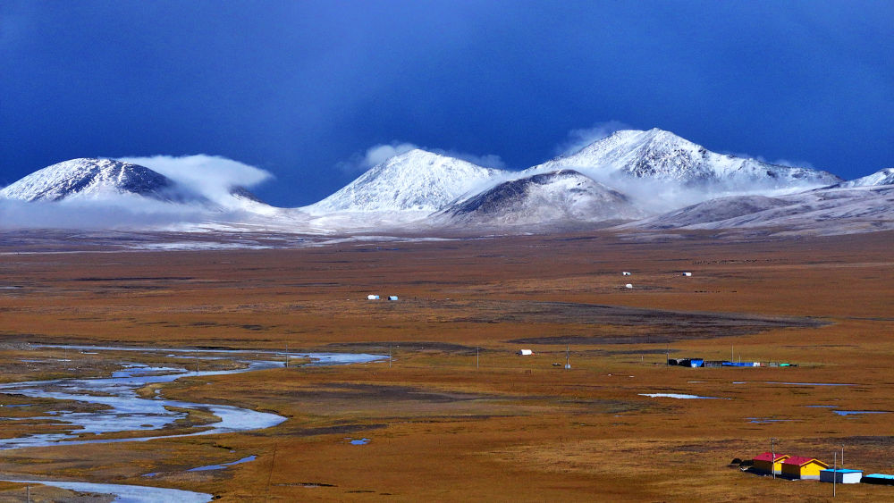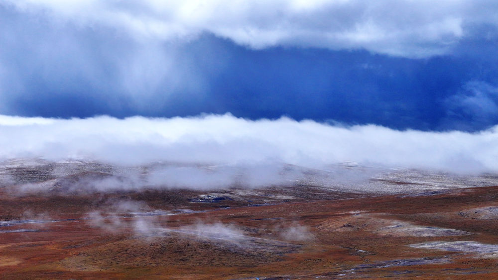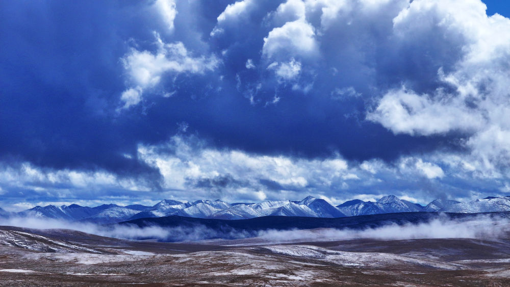 金秋时节,在位于三江源地区的青海省玉树藏族自治州境内,雪山、草原、云海、牛羊组成一幅壮美的秋日画卷。