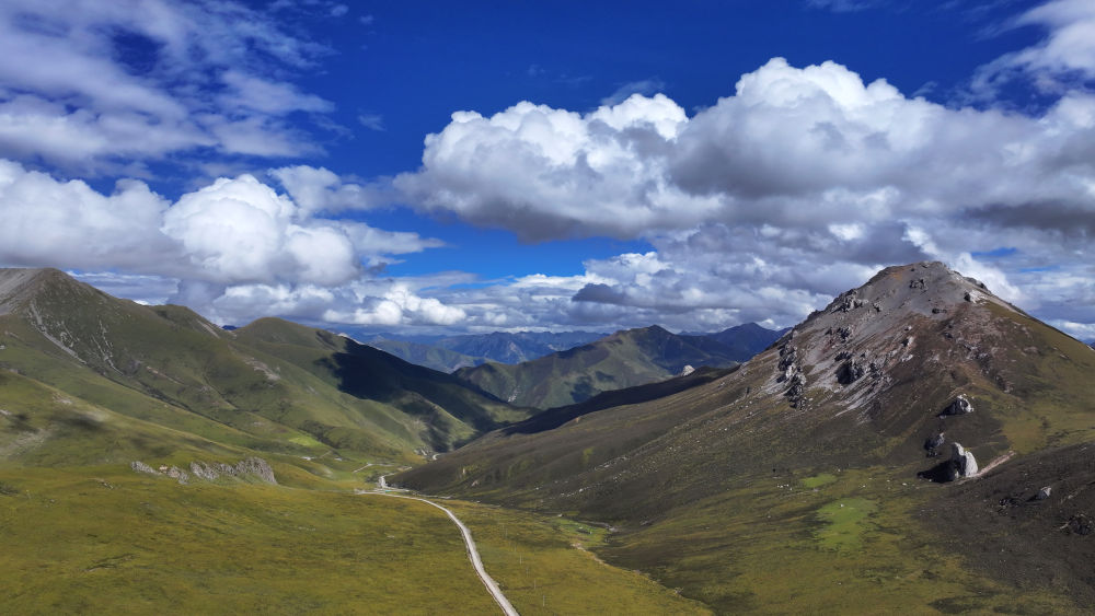 这是9月23日在青海省玉树藏族自治州称多县境内拍摄的高原风光(无人机照片)。新华社记者 张宏祥 摄
