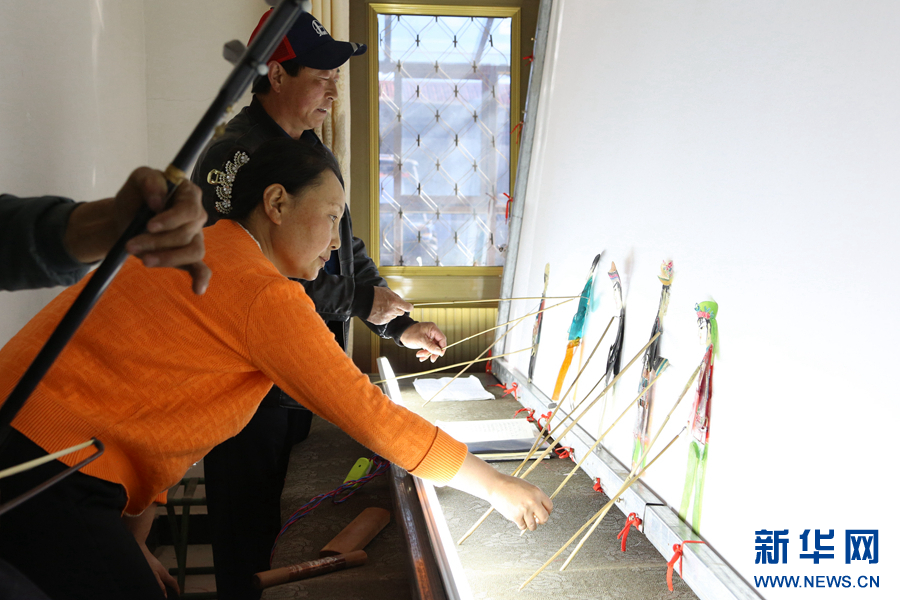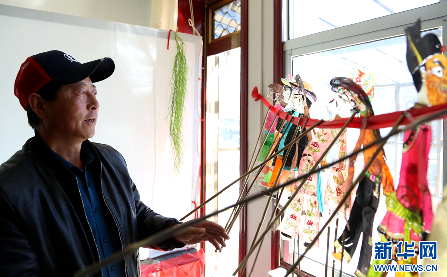 化隆县扎巴镇天籁皮影艺术剧团正在排练。新华网 卡娅梅朵 摄