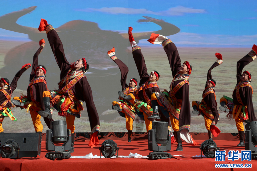 2024年玉树州绿色有机农畜产品展销推介活动开幕仪式上的演出。新华网 卡娅梅朵 摄