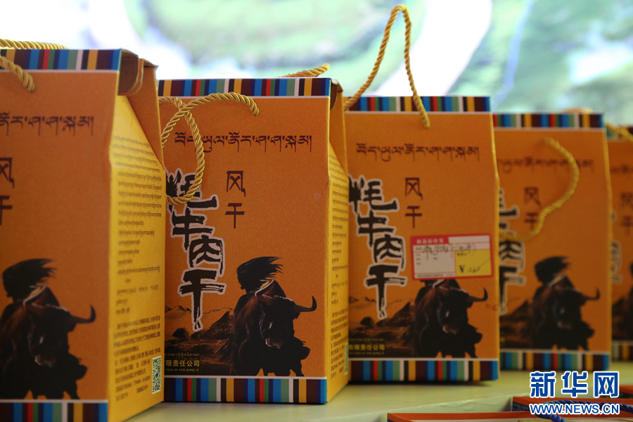 图为现场展销的牦牛肉干。新华网 卡娅梅朵 摄