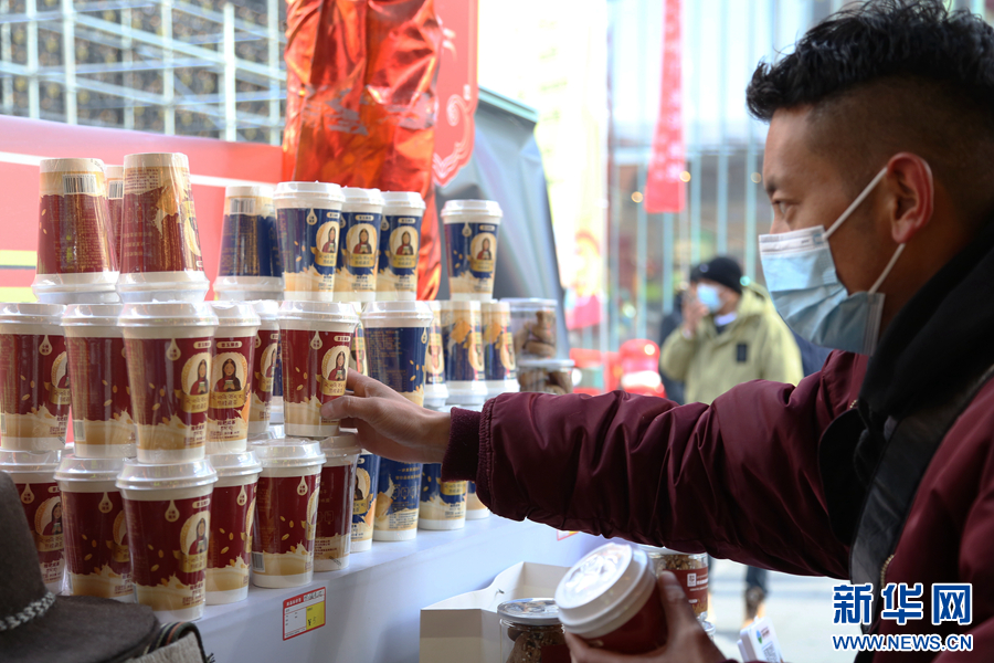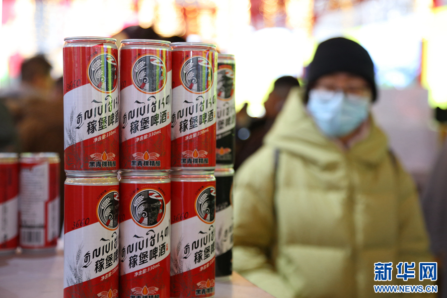 图为现场展销的黑青稞精酿啤酒。新华网 卡娅梅朵 摄
