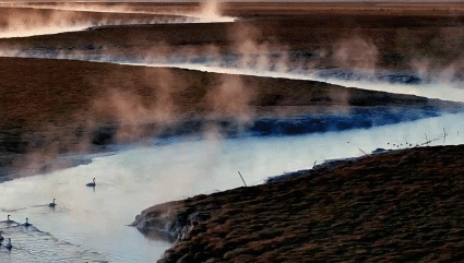 “三九”时节,在青海湖泉湾湿地,雾霭沿着河道蒸腾而起,犹如一幅天然的水墨画卷,又似童话仙境般美妙。