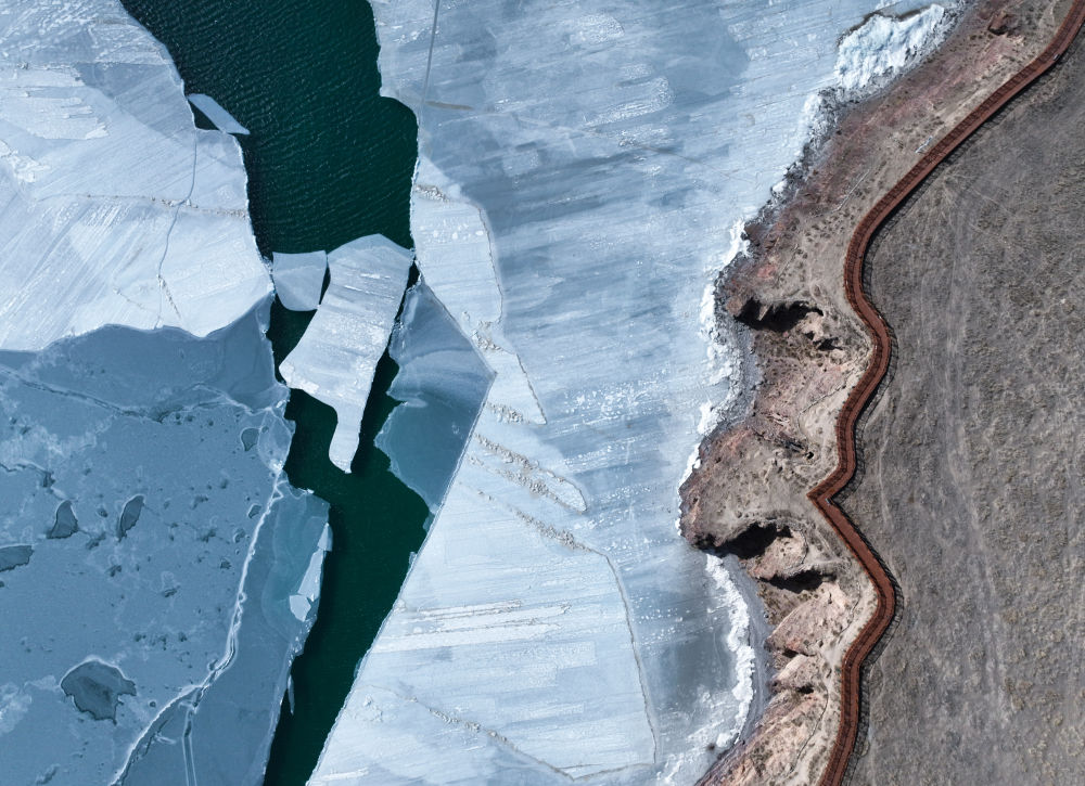 这是1月25日在青海省海南藏族自治州共和县境内拍摄的青海湖一角(无人机照片)。新华社记者 耿辉凰 摄