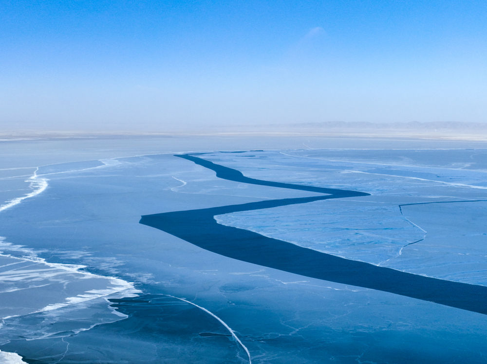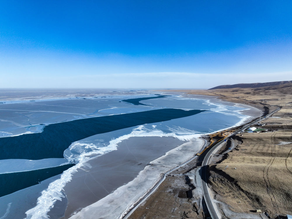 隆冬时节,被誉为“高原蓝宝石”的青海湖冰封玉砌,银装素裹,别具特色。