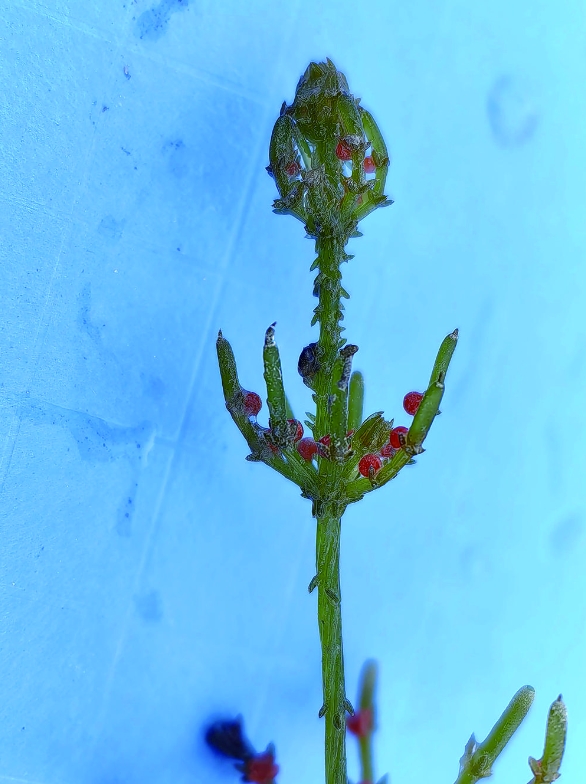 据了解,2023年7月至8月,省林草局组织都兰县林草局和青海师范大学生命科学学院苏旭教授团队开展了“青海野生单子叶植物种质资源调查及其多样性评价项目”的野外考察和群体遗传学采样,在青海省都兰县宗加镇以北荒漠草原发现一种形态较为特殊的藻类植物,通过查阅《中国植物志》《青海省植物志》等资料,根据形态特征并经有关专家核实,确认为拟球状轮藻,为青海省植物分布新记录。