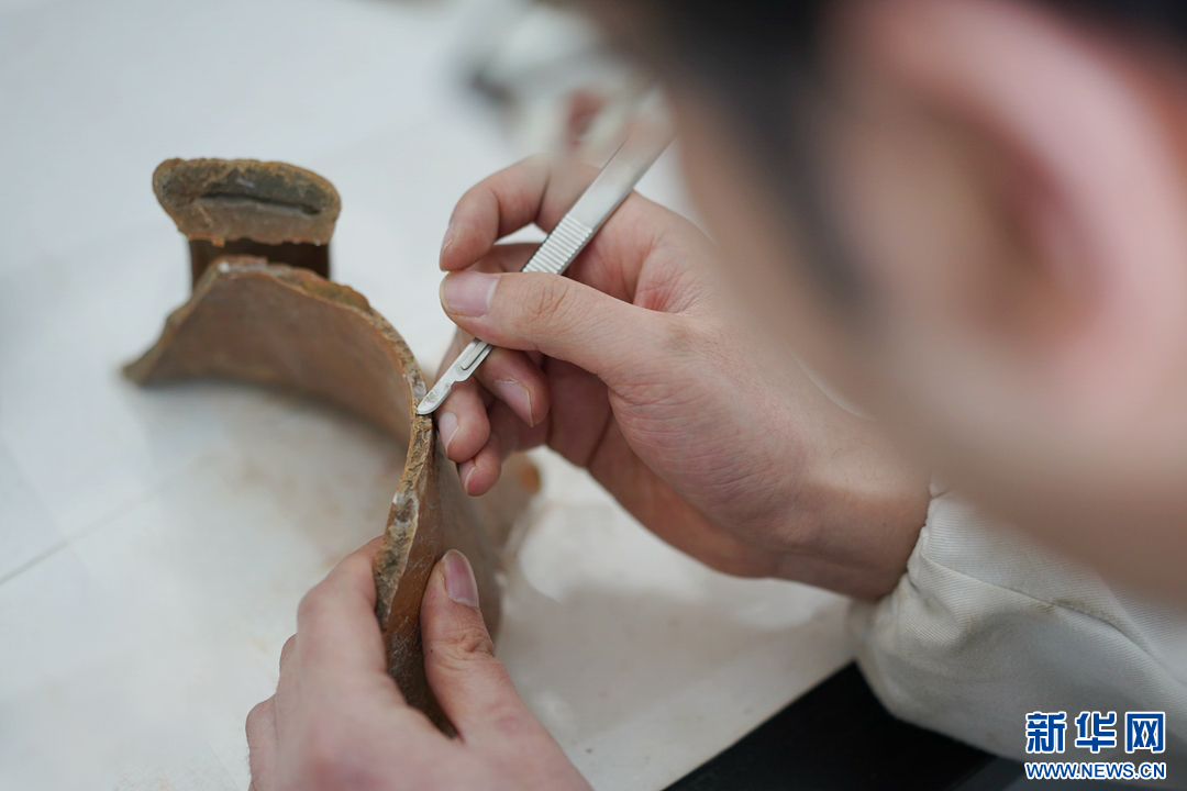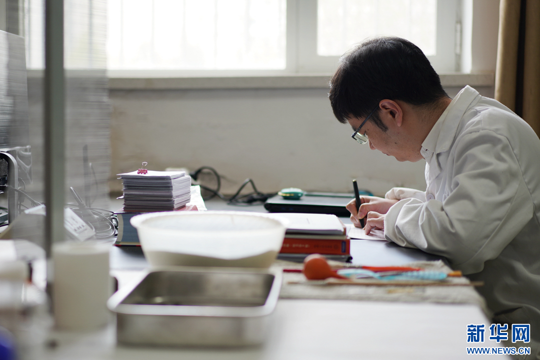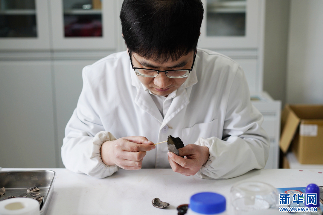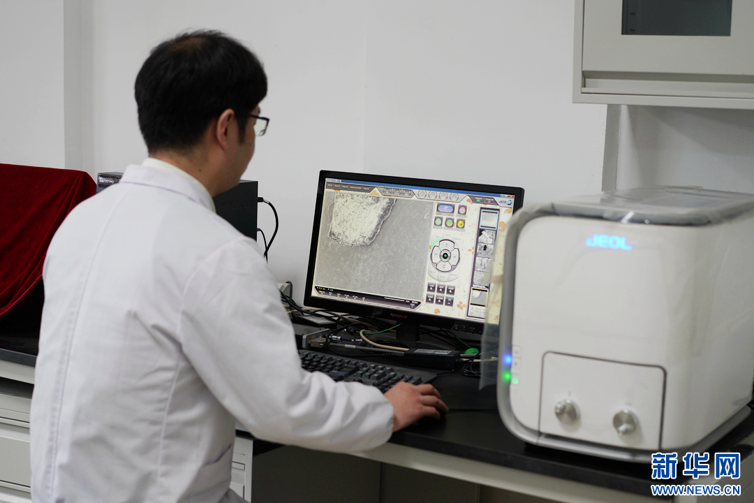 ↑刘星星通过扫描电子显微镜-能谱仪对采集样本进行化学成分分析。