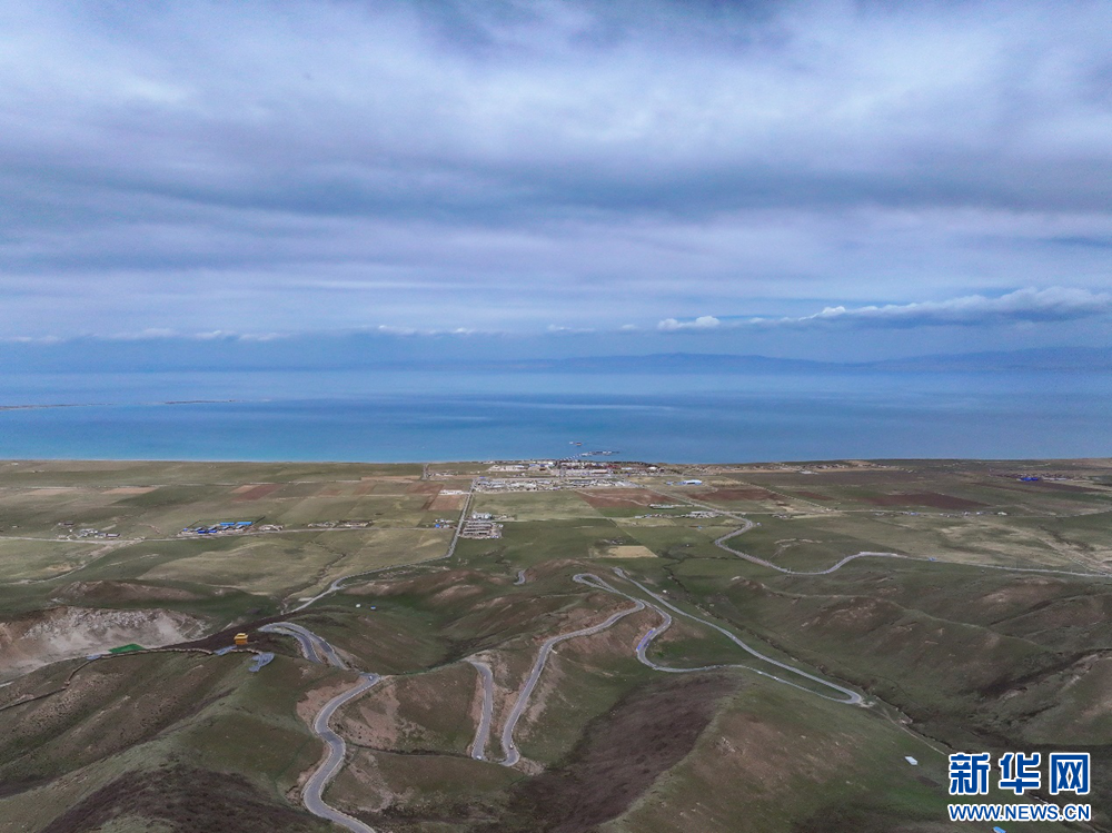 远眺青海湖(无人机照片)。新华网 鱼昊 摄