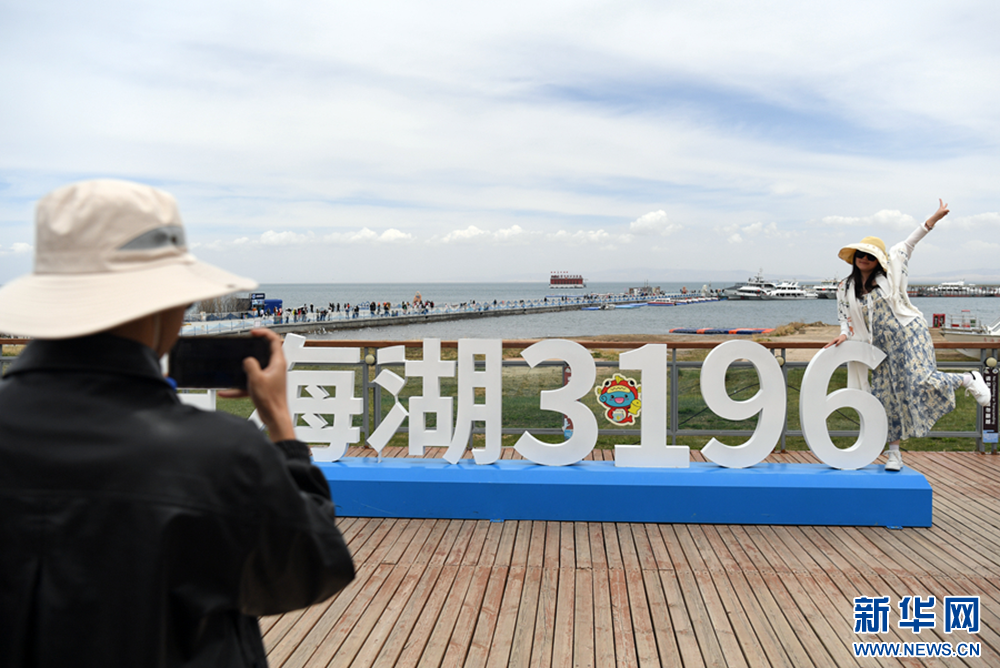 随着旅游季的到来,青海湖二郎剑景区迎来众多游客,游客在蓝天碧水之间拥抱大自然。近年来,青海湖生态环境质量显著改善,一幅人与生态和谐共生的画卷徐徐铺展,吸引大量游客旅游观光。