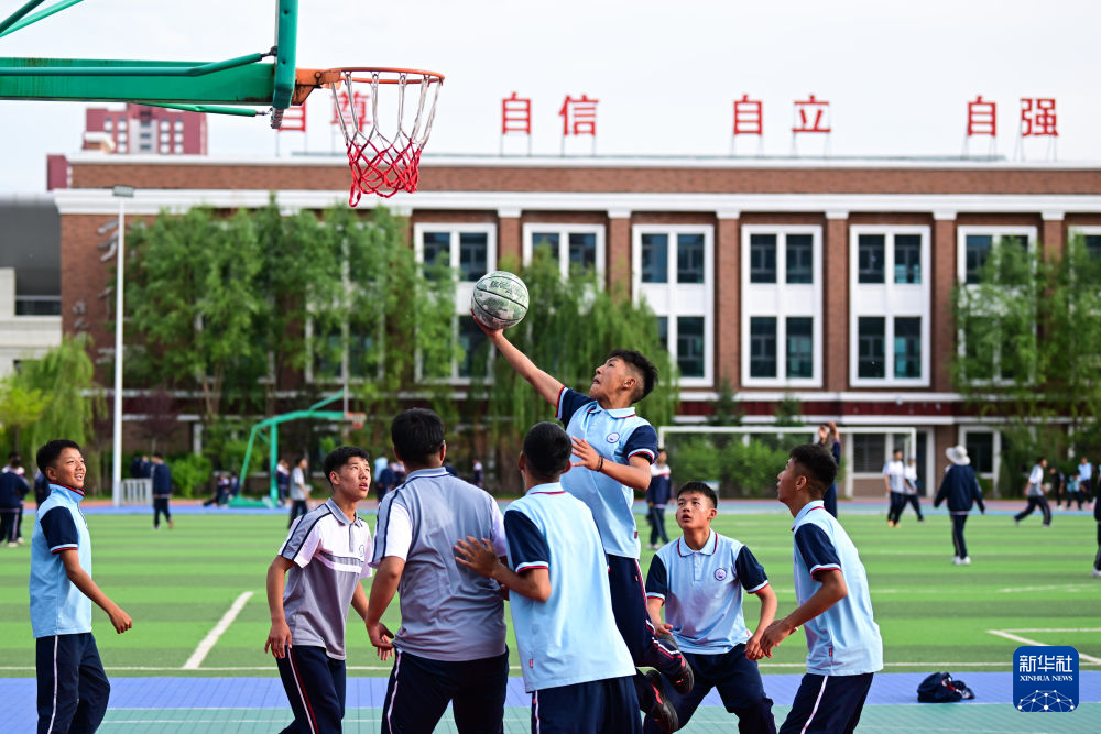 6月18日,果洛西宁民族中学学生在打篮球。新华社记者 张龙 摄
