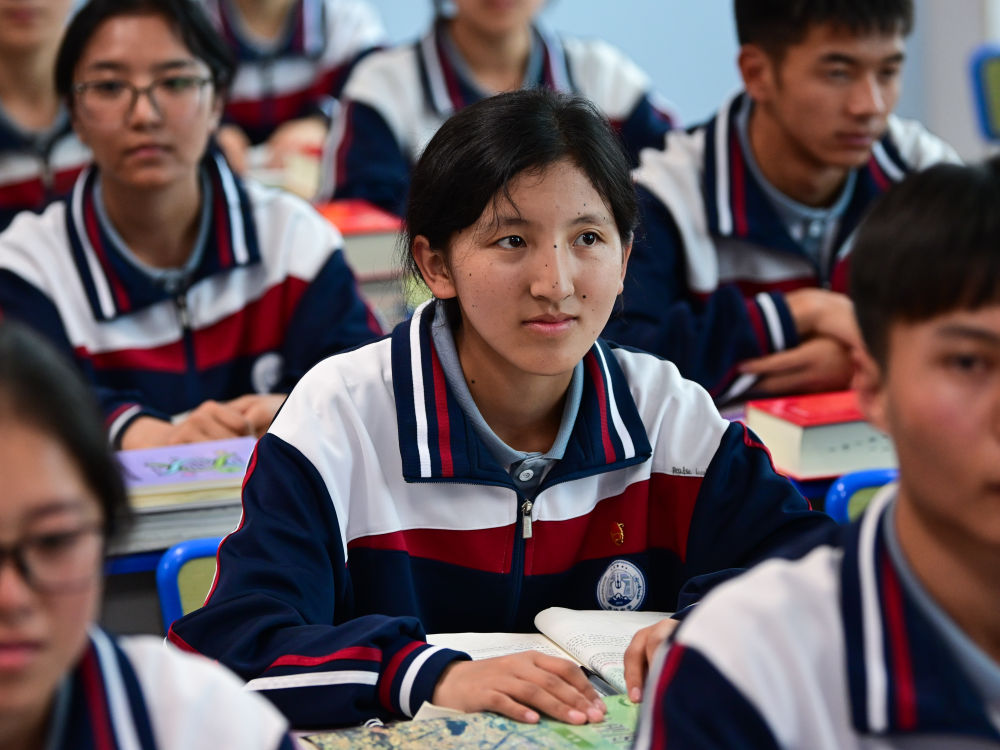 6月18日,果洛西宁民族中学学生在上课。新华社记者 张龙 摄