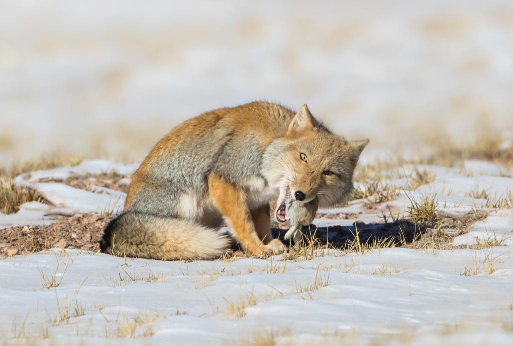 棕熊游离在藏羚羊“黑名单”的边缘,因为它一般不会主动攻击。只有遇到藏羚羊尸体时,它才会饱餐一顿。其实,棕熊更“偏爱”高原鼠兔,它通过挖洞破坏高原鼠兔的巢穴,再捕食这些啮齿类小动物。