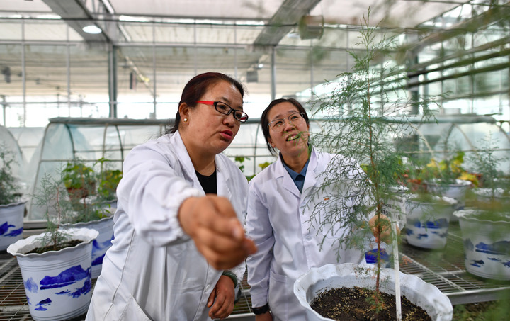 科研人员在西藏种质资源库查看西藏巨柏实生苗生长情况(2023年11月30日摄)。新华社记者 晋美多吉 摄
