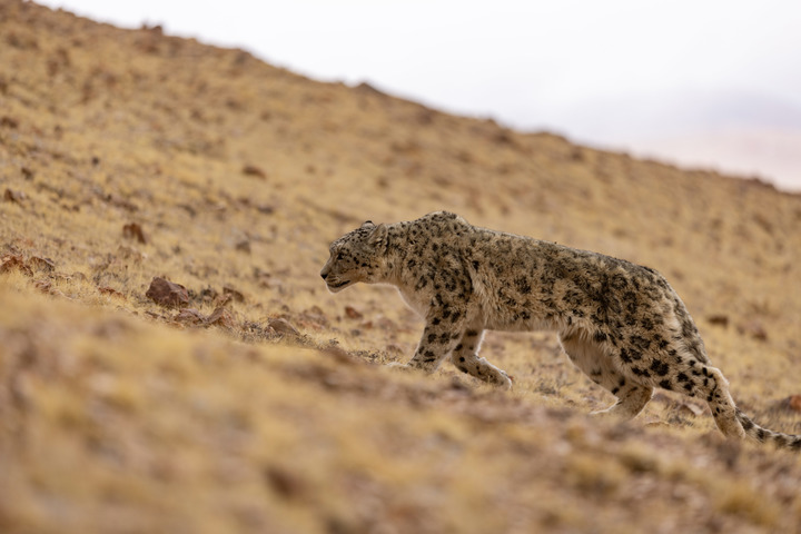 雪豹被称为“高海拔生态系统健康与否的气压计”。由于盗猎、生境退化、食物减少等原因,它一度消失于人们的视野,踪迹难寻。