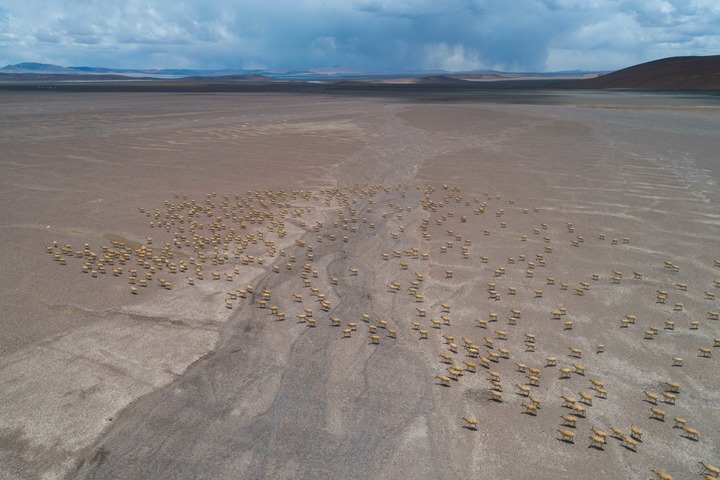 这是在藏北羌塘国家级自然保护区内拍摄的迁徙途中的藏羚羊(2024年6月13日摄)。新华社记者 旦增尼玛曲珠 摄