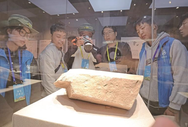研学团队成员认真听讲解并拍照记录。
