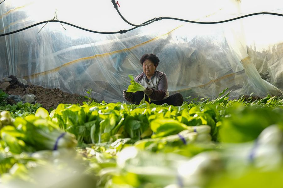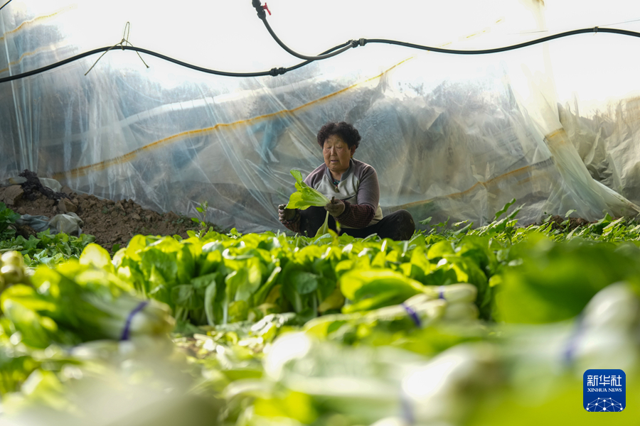 11月21日,工作人员在青海省西宁市湟中区一处蔬菜大棚内工作。新华社记者 杜笑微 摄