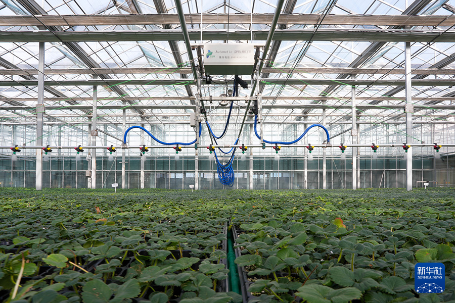 11月21日,在青海省西宁市湟中区一家农业科技企业,水肥一体化航喷设备在给农作物浇水。新华社记者 张子琪 摄