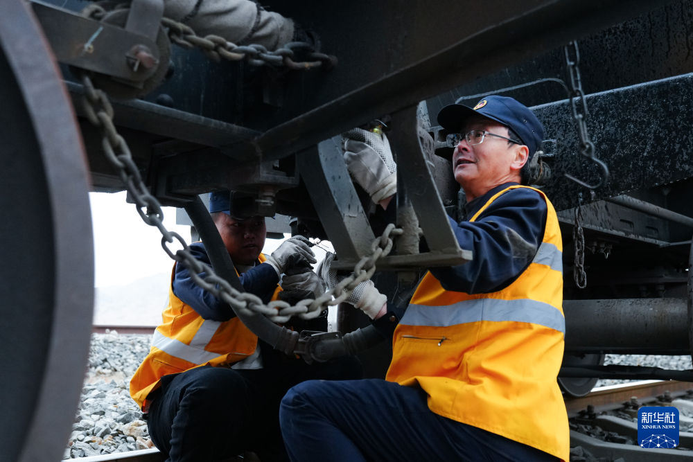2月4日,韩景泉在列车避让等候途中下车巡视。新华社记者 齐芷玥 摄