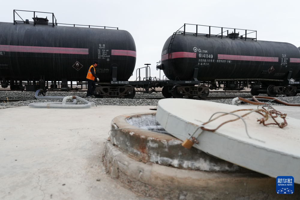 2月4日,韩景泉在放水过程中巡检列车,前面是工区储水井。新华社记者 齐芷玥 摄