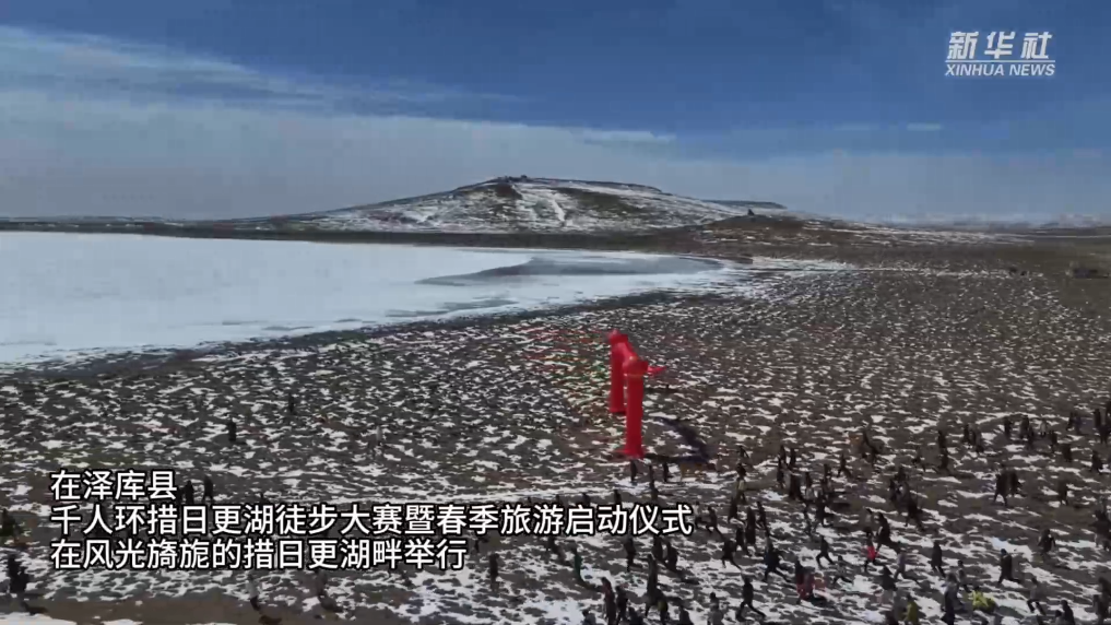 在泽库县,千人环措日更湖徒步大赛暨春季旅游启动仪式在风光旖旎的措日更湖畔举行。此次活动融合文艺展演、徒步竞技、非遗展示、摄影展览等多种形式,千余名参与者齐聚高原湖畔,共赴一场春日盛宴。