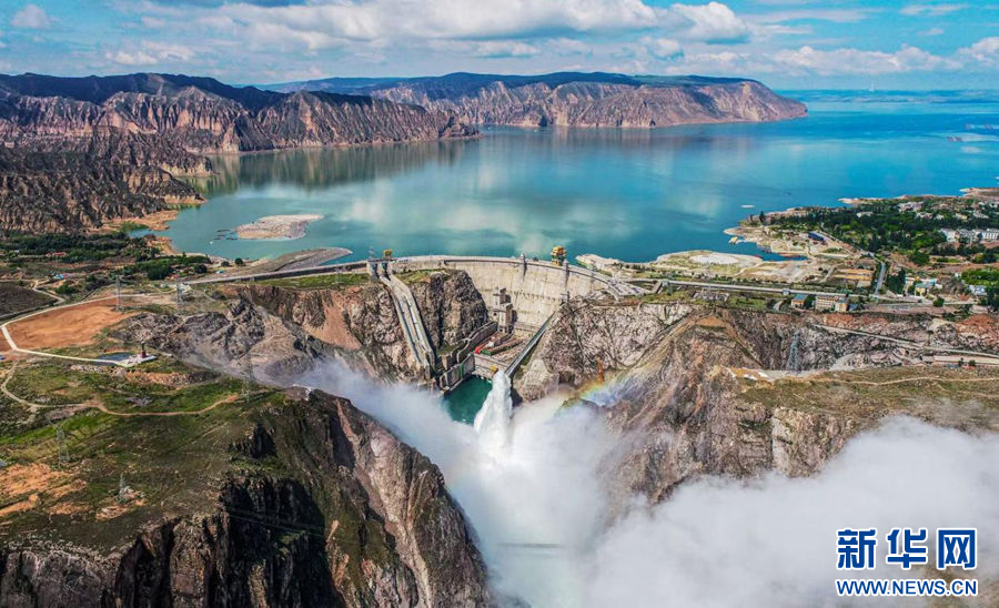 这是位于青海省海南藏族自治州境内的龙羊峡水电站(无人机照片)。