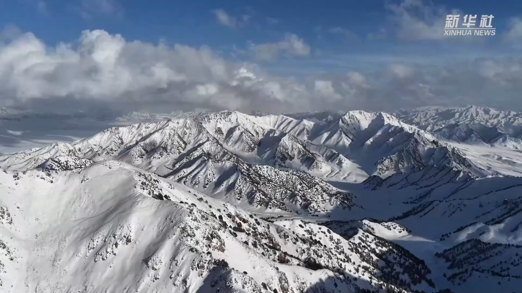 高空俯瞰,皑皑白雪覆盖群山,勾勒出舒展柔美的自然线条。天地澄澈明净,静谧辽阔间尽显雪域高原的雄浑与灵秀,勾勒出独属于高原春日的清新意境。