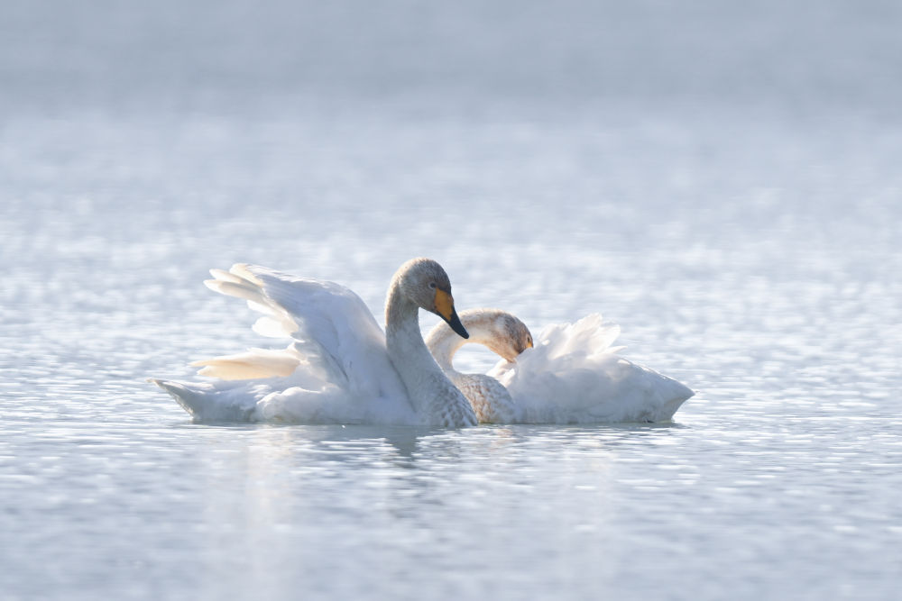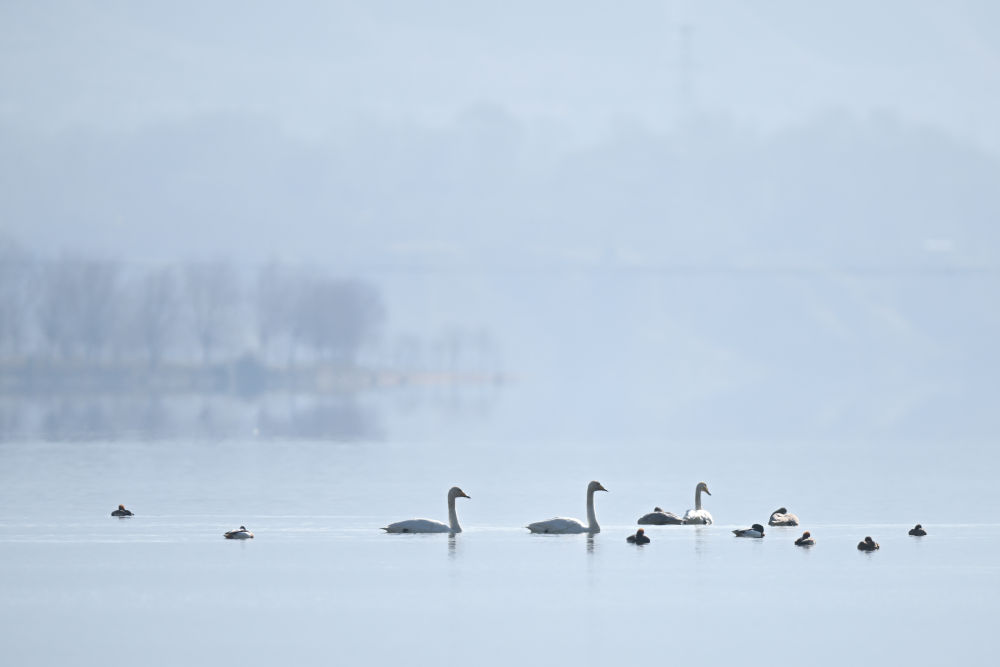 近日,青海省海东市化隆回族自治县群科镇的黄河上迎来近百只越冬的大天鹅,为冬日高原增添生机。近年来,青海省加大力度保护治理境内黄河流域,改善当地生态环境,为越冬候鸟提供良好栖息地。
