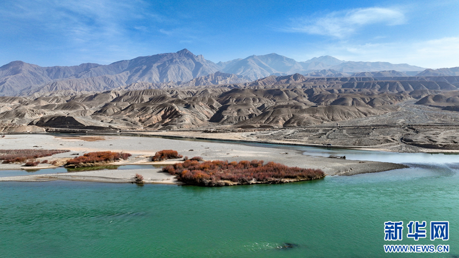 清澈的河水宛若一条碧绿的丝带。新华网发(宋忠勇 摄)