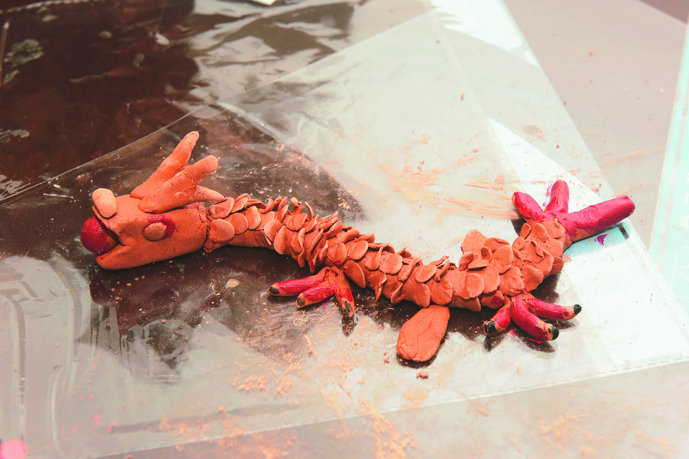 人群中,74岁白发苍苍的李先生十分引人注目,他是和女儿陪着六岁半的外孙女湛湛来参加活动的。湛湛看到出土的汉代陶井文物后,十分喜欢,自己也动手制作了一个陶井。而她的妈妈李女士则制作了一条陶龙。