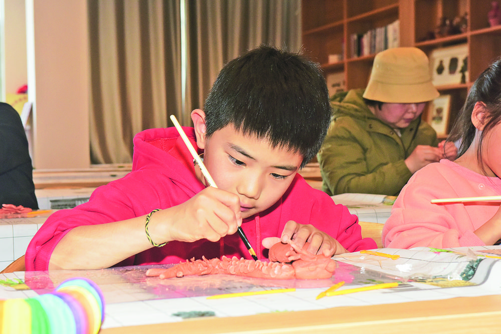制作陶器的底部、用“泥条盘筑法”制作器身、修整器身、晾晒、上彩……随着宋昊的讲解和示范,从装着四千年前喇家面条的陶碗到辛店文化彩陶靴,从宗日文化彩陶碗到汉代陶井……一件件彩陶在孩子和家长手中“复活”,孩子们的双手沾满了陶泥,脸上荡漾着满是成就感的喜悦。