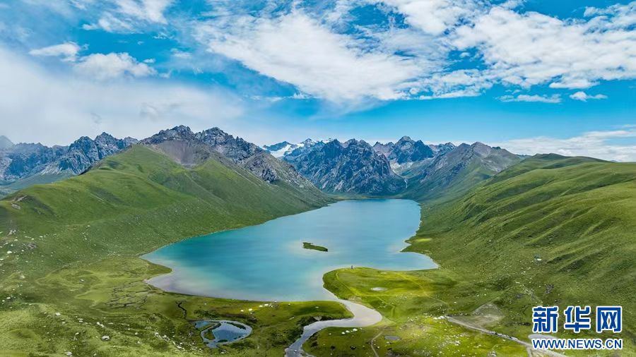 在果洛州久治县境内拍摄的年保玉则(无人机照片)。新华网发(宋忠勇 摄)