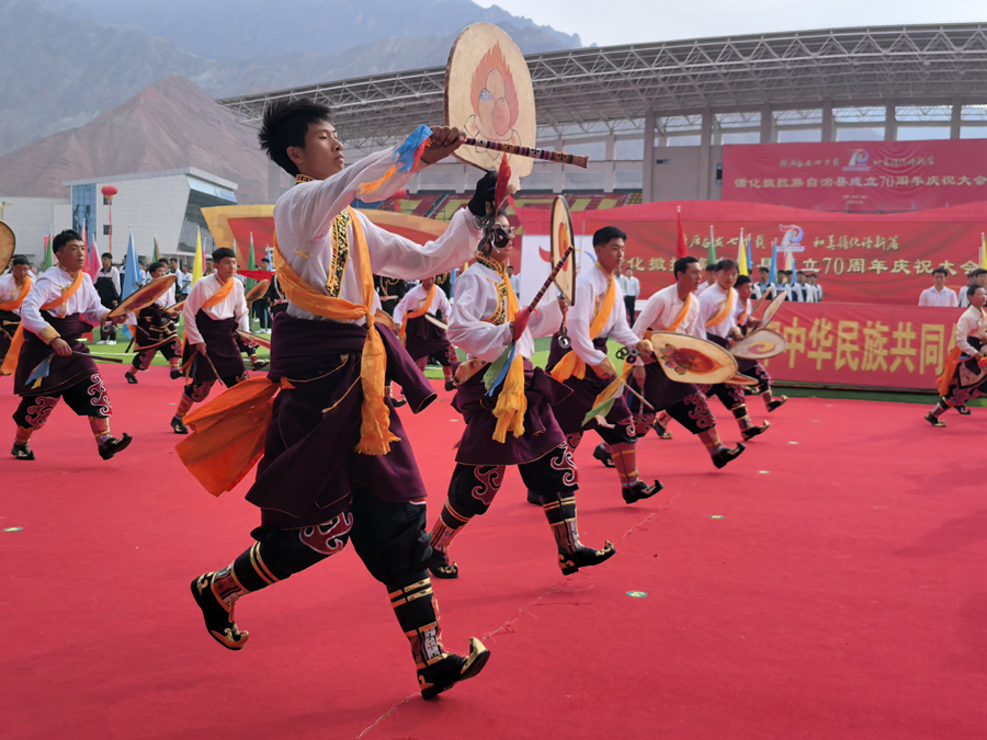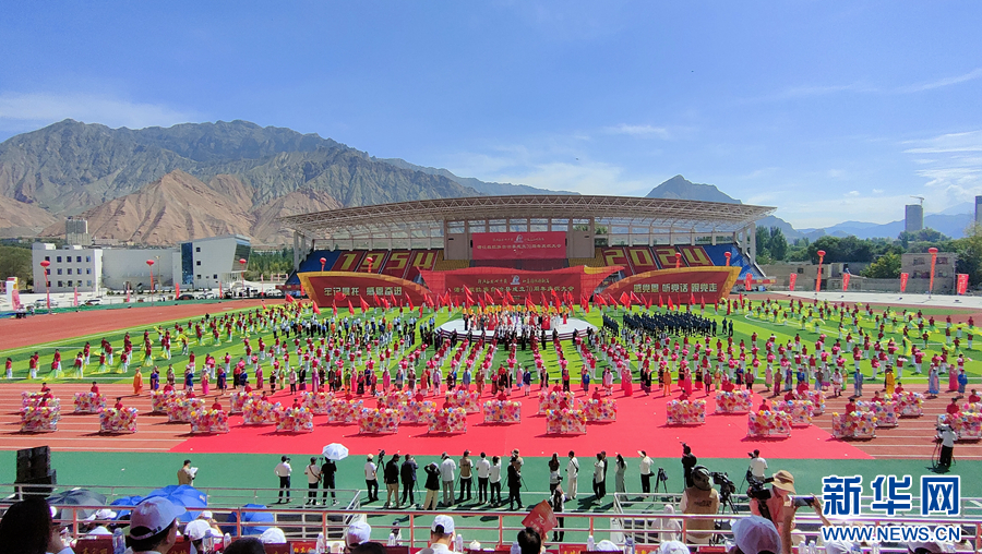 新华网西宁8月29日电(鱼昊)29日,青海省海东市循化撒拉族自治县成立70周年庆祝活动在循化县体育场举行,当地各族干部群众欢聚一堂,共庆盛会。