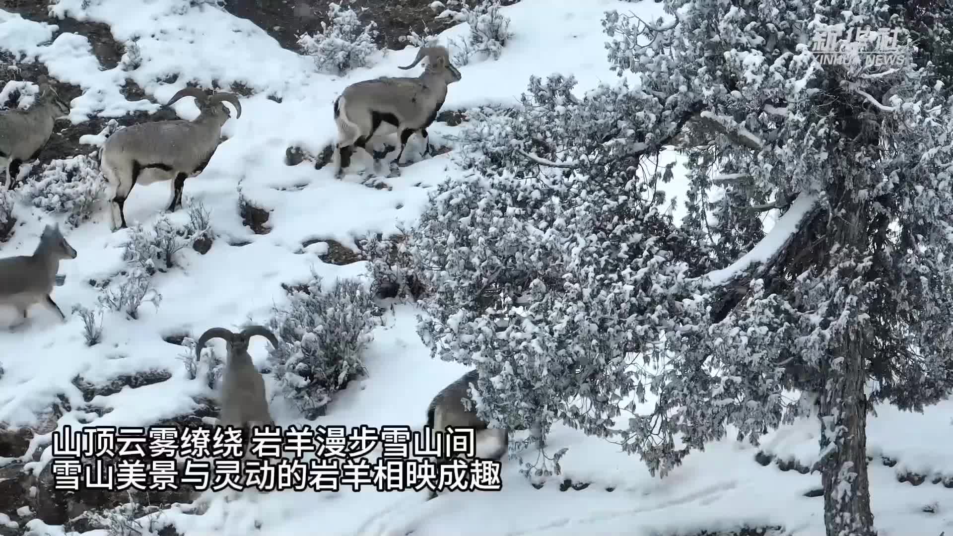成群岩羊现身青海柏树山 雪中漫步觅食-新华网