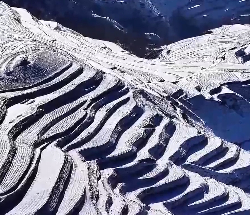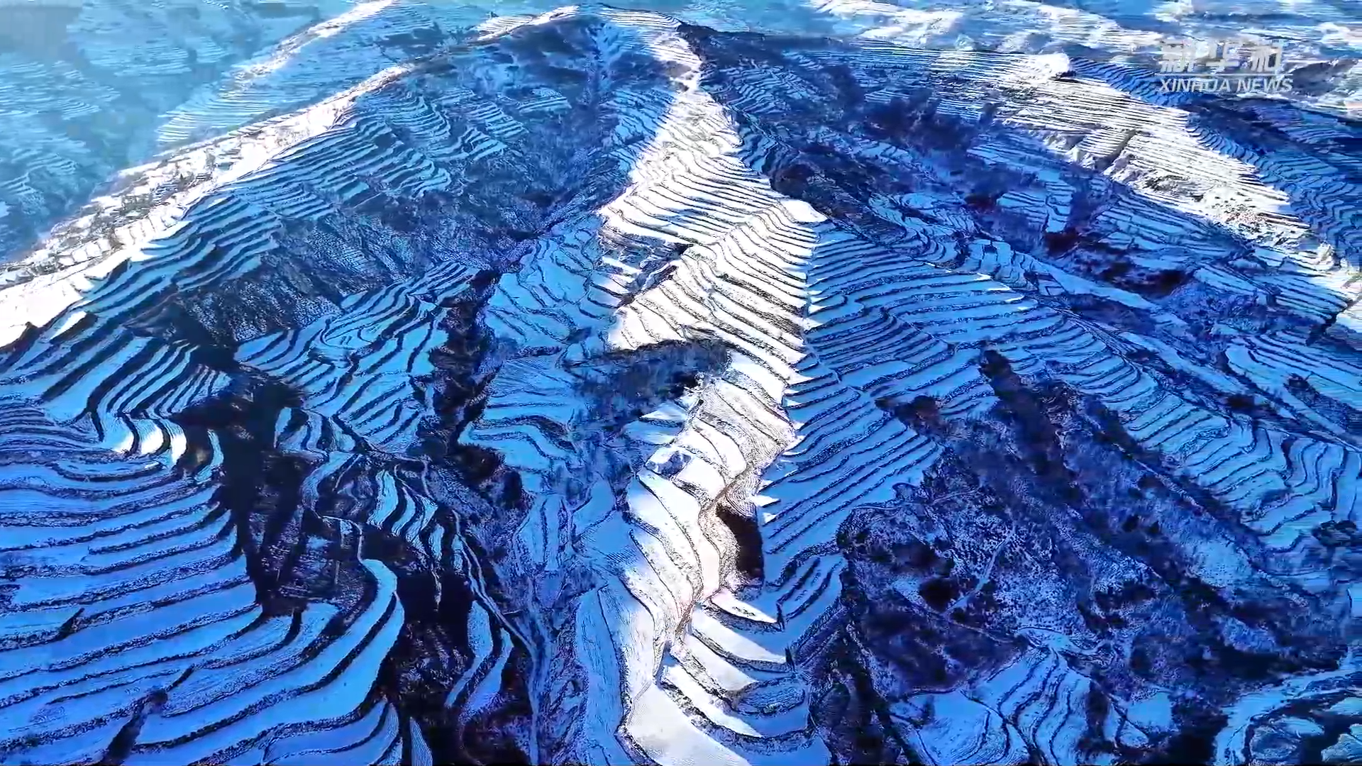 近日,青海省海东市互助土族自治县东山乡迎来立春后的首场降雪。春雪过后,山间的梯田被白雪覆盖,仿佛披上了一层银装。