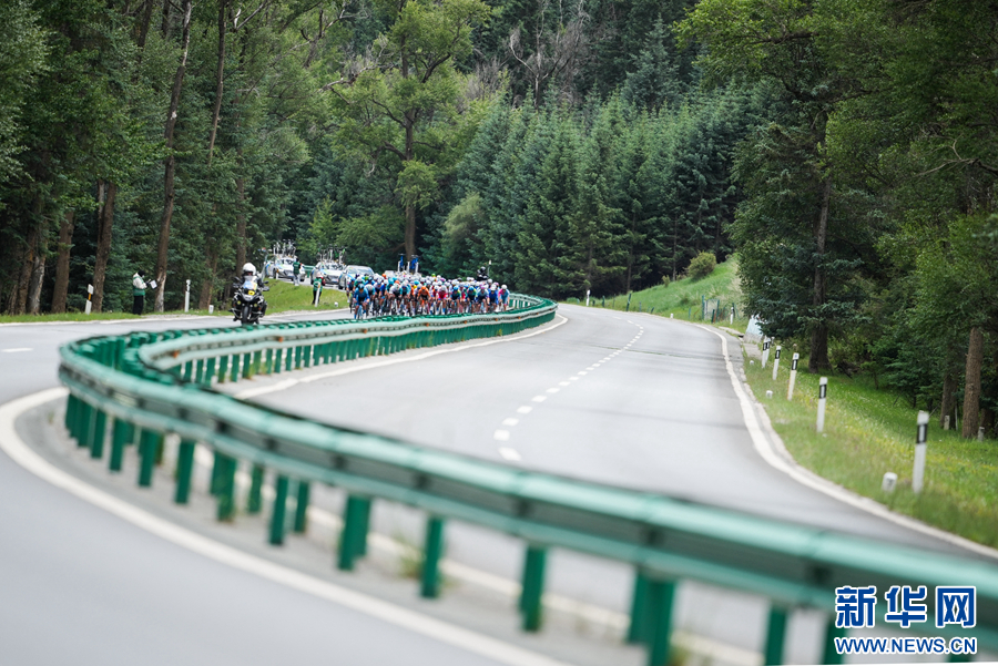 7月9日,环青赛第四赛段门源至祁连赛段,运动员在比赛途中。新华社记者 齐芷玥 摄