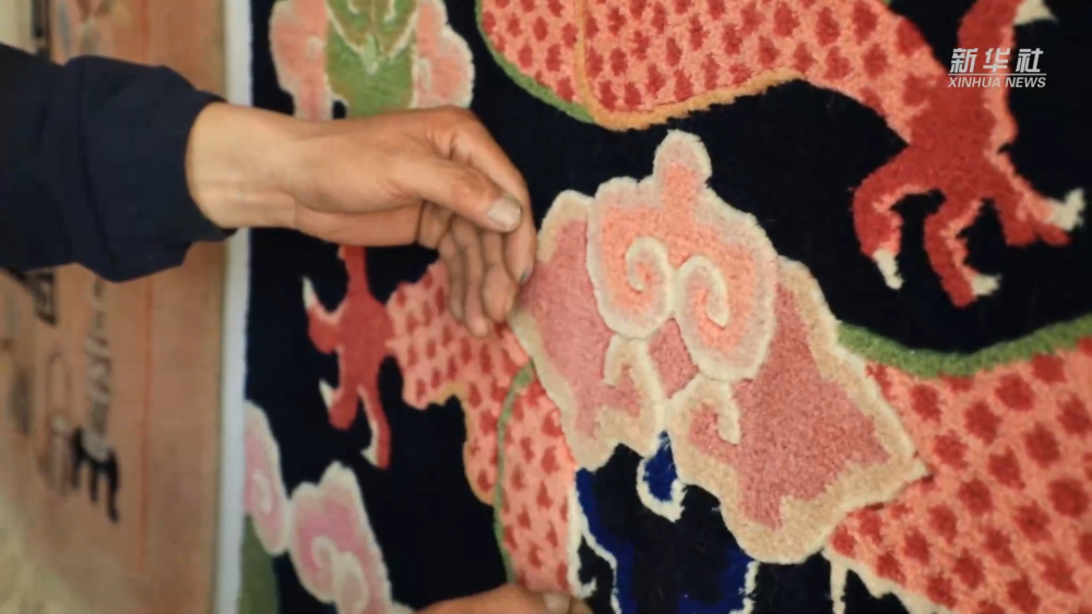 家住青海省西宁市湟中区上新庄镇加牙村的杨永良从8岁时就跟着父辈学习藏毯编织技艺,是家族第七代织毯传人。