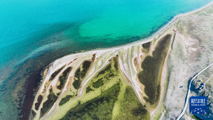这是2025年7月25日在青海省果洛藏族自治州玛多县扎陵湖畔拍摄的“尕日塘秦刻石”所在地(无人机照片)。 新华社记者 杜笑微 摄