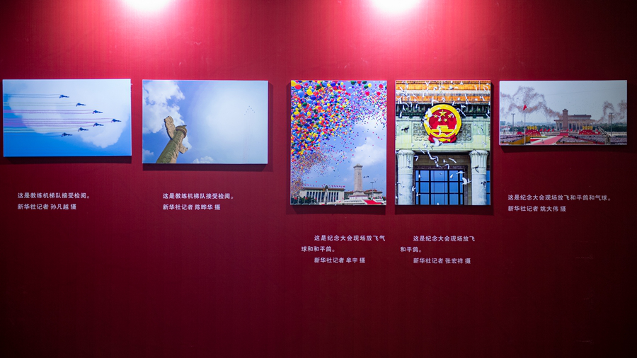 2025年阅兵新华社新闻摄影展格尔木展出现场展出的照片。新华网 潘彬彬 摄