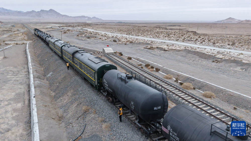 2月4日,韩景泉在放水过程中巡检列车,前面是工区储水井。新华社记者 齐芷玥 摄