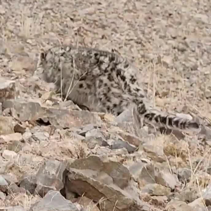 近日,青海省玉树藏族自治州治多县的牧民在放牧时,近距离拍摄到雪豹活动画面。